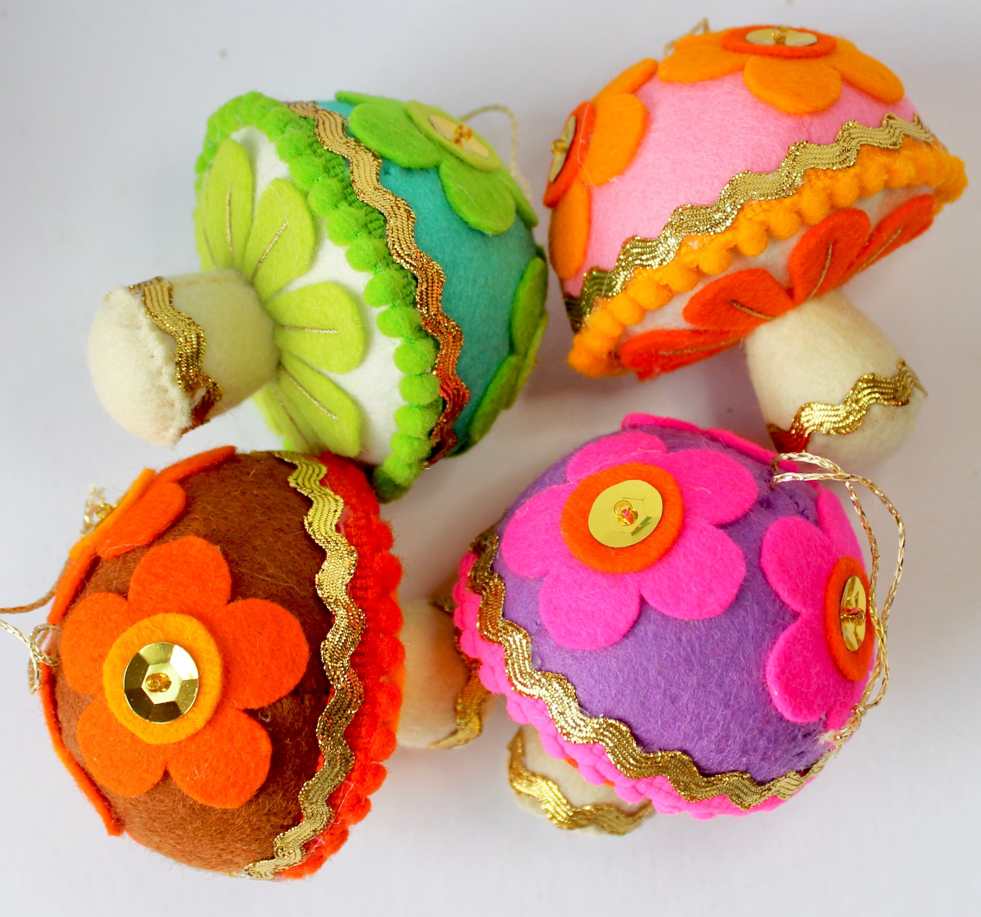 MORE COMING SOON! Handmade Groovy Felt Christmas Magical Toadstool Ornaments