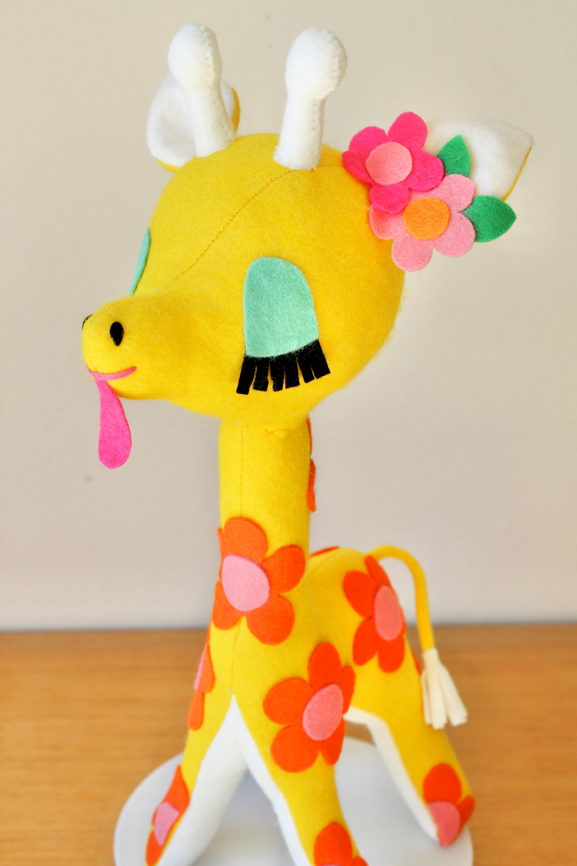 This giraffe has been designed and inspired by vintage toys, keeping that 1960s and 70s handicraft style in mind!