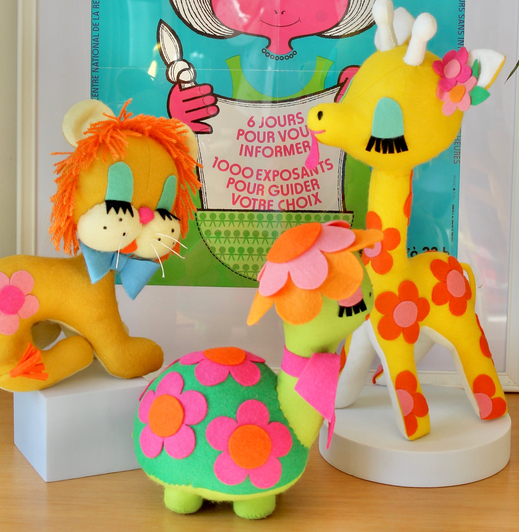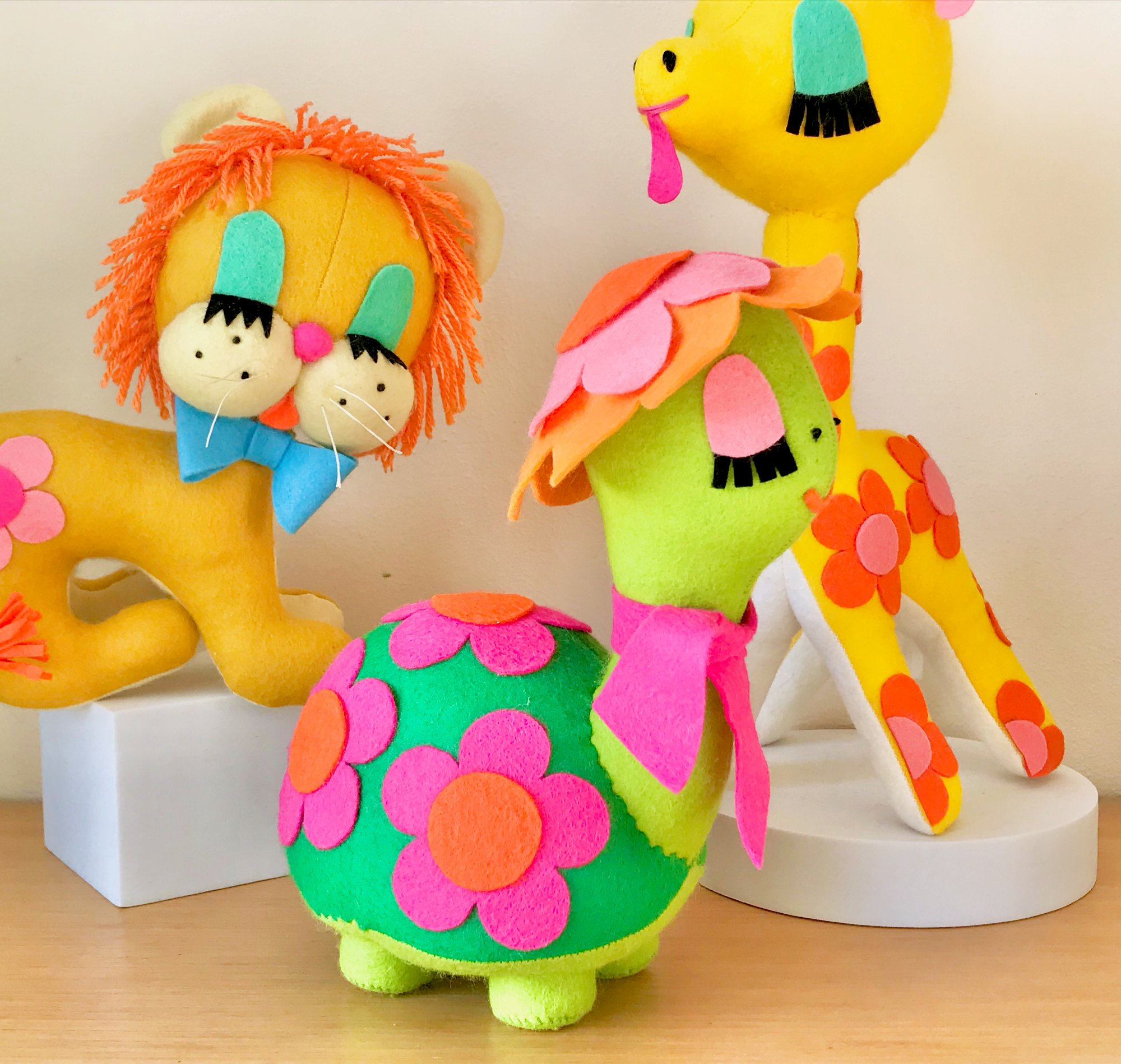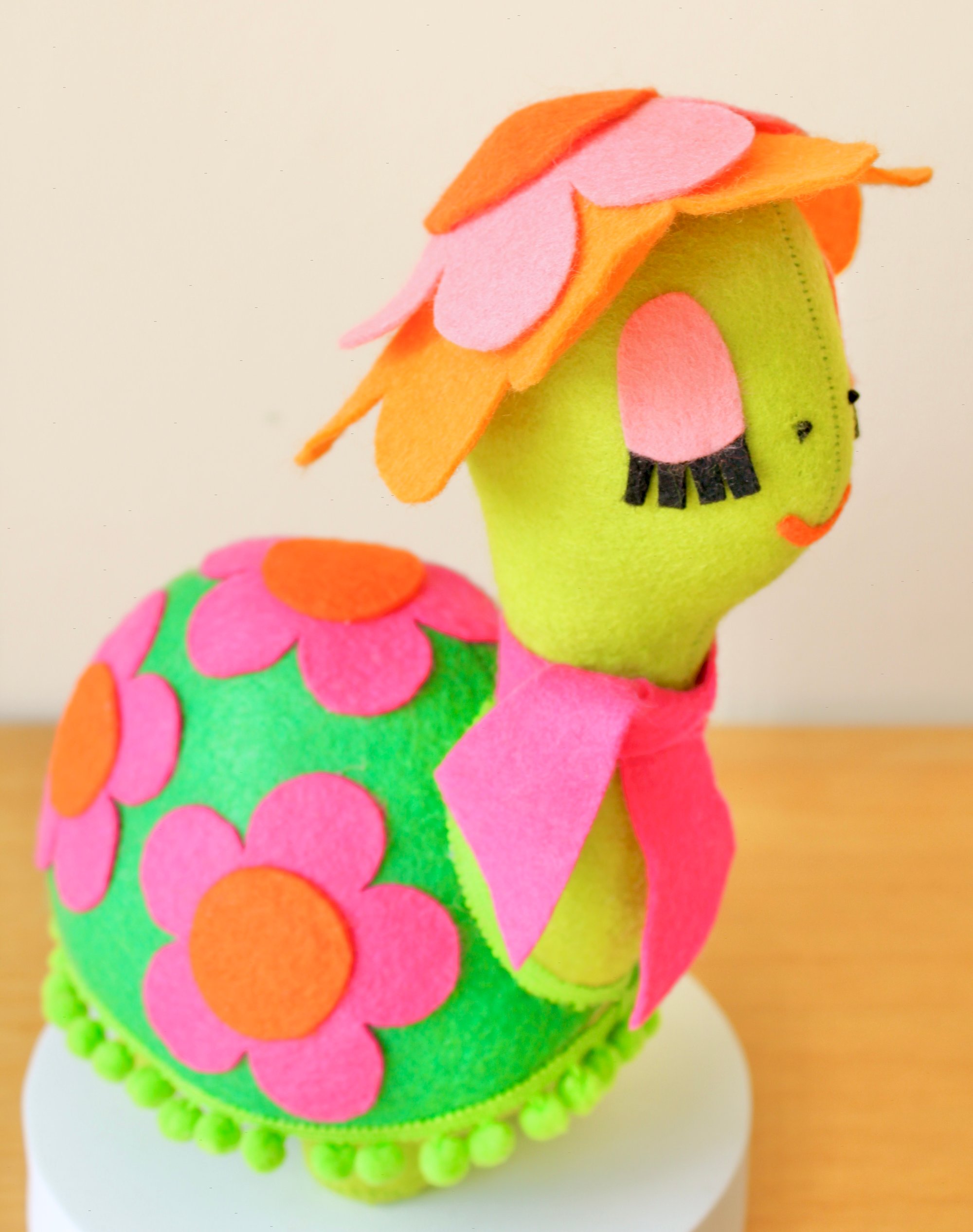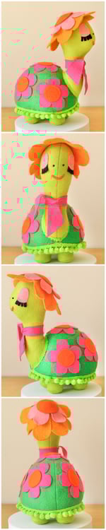 This turtle has been designed and inspired by vintage toys, keeping that 1960s and 70s handicraft style in mind!